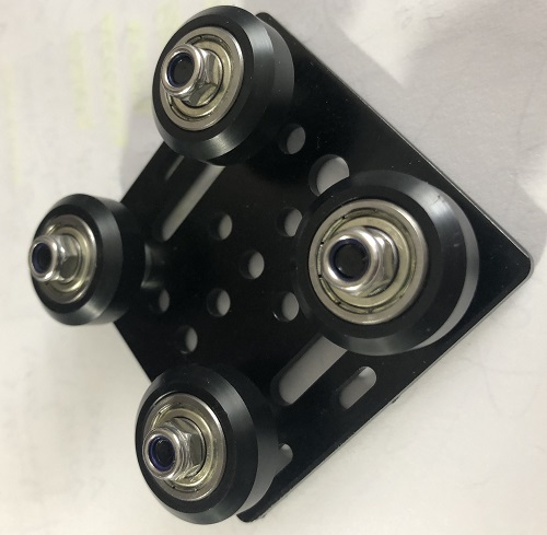 Completa con 4 ruedas dual V, placa aluminio anodizada negro, separadores y tornillos M5x25 mm de fijacion