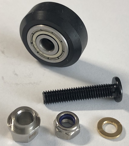 Incluye rodaja V, separdor excentrico, arandela y tornillo M5x25 mm con tuerca de seguridad M5
