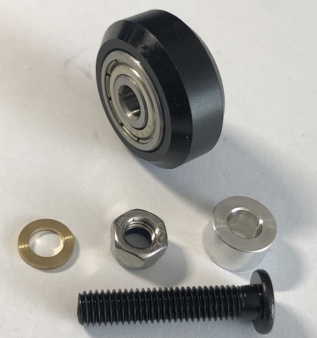 Incluye rodaja V, separdor centrico, arandela y tornillo M5x25 mm con tuerca de seguridad M5