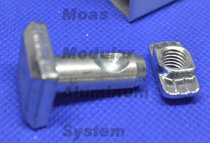 Aplcación: Utilizado para fijar placas, ángulos o paneles a los perfiles de la serie 30 y 40. El tornillo en T accesa desde cualquier punto a la ranura del perfil. Permanece en su posición incluso en perfiles verticales debido a el balin.