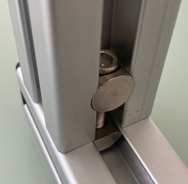 Aplicación: Utilizado para fijar placas, ángulos o paneles de la serie 45. El tornillo en T ingresa desde cualquier punto a la ranura del perfil y gira solo 90°.